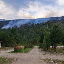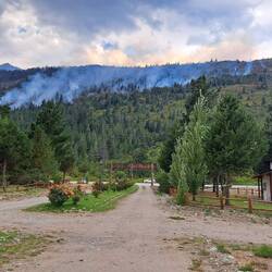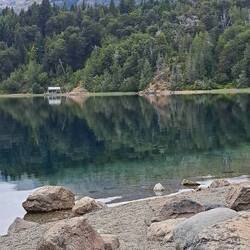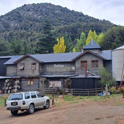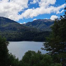 Hier übernachteten weitere Biker. Ein Pärchen mit Bike und Anhänger. Wir unterhalten uns soweit es geht. Es funktioniert gut mit dem Anhänger, in der Höchstgeschwindigkeit natürlich begrenzt. Wir hatten uns bereits am Vortag mehrmals gegenseitig überholt und gesehen. Frühstück in der Tankstelle, Schlüssel abgeben und weiter. Zwischenstopp in Epuyen. Tagesmenü und Stempel für meinen Ruta 40 Pasaporte. Da ich diesen Teil der Ruta 40 schon einmal gefahren bin, kommt einiges wieder in Erinnerng. Ein Waldbrand zwingt uns zu einen Umweg. Ebenfalls Zwischenstopp am Lago Puela. Der Sohn der Besitzerin eines wunderschönen Holzhotels lebt in Berlin. Stempel und Verabschiedung auf Deutsch. Nächste Stadt ist El Bolson. Hier treffe ich ein junges Pärchen aus Leipzig. Sie wollen auch mehrere Monate reisen und sind Richtung Ushuaia als Backpacker unterwegs. Es freut mich und den beiden, dass ich ein paar Tipps geben kann. El Bolson ist eine bunte Stadt. Ich überlege zu bleiben als es anfängt zu tröpfeln. Sicherlich gut für die Feuerwehr. Aber ich will den Regen entfliehen und nach Bariloche. Doch der Regen wird immer heftiger. Ununterbrochen. 100 Tage, 100 KM Regen. Eine schöne Strecke mit Kurven. Schade. Erst in Bariloche hört es auf. Ich steuere eine Hosteria an. Man hat noch ein Zimmer. Kleines Missverständnis. Mir zu teuer. Ich suche weiter. Bariloche ist international. Auch ausserhalb der Ferienzeit voll belegt. Nirgends ein Bett. Ich fahr zurück. Natürlich ist das Zimmer jetzt weg. Man hat noch ein anderes. Das beste im Haus mit Meerblick. Wahrscheinlich schlaf ich die nächsten 3 Monate im Wald. Ich bekomme es zum Normalpreis. Puh. Heiß duschen und aufwärmen. Blue steht geschützt.