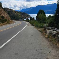 Es hatte die ganze Nacht geregnet in Bariloche. Am Morgen war es endlich regenfrei wenn auch verdächtig bewölkt. Nochmal in Ruhe frühstücken und dann packen. Ich verabschiede mich vom freundlichen Manager und die Fahrt beginnt. Der Wind ist gemäßigt und nach all der Steppe wird es grün und die Straße schwungvoller. Ich bleibe auf der RUTA 40 und fahre nach Villa La Angostura. Es fängt an zu nieseln. Hier hatten sich die Wege von Achim und mir damals getrennt. Nochmal tanken und Ölcheck. Die über 100 KM lange Straße "Ruta de los 7 Lagos" bis nach San Martin de los Andes hat hier ihren Anfang. Es ist wieder trocken und kaum windig. Kurve an Kurve geht es entlang der Seen. Sattes grün und immer wieder der Blick auf die Gewässer. Verschiedene Miradore zum verweilen und genießen. Auch diesmal immer noch unglaublich schön. Da freut sich das Bikerherz. Kurz vor San Martin treffe ich auf Vater und Sohn, die zusammen auf Motorradtour sind. Vater hat ein Anhänger mit einer wie selbstgebastelten aussehenden Piratenschatzkiste auf seinem Anhänger. Ein weiterer Biker kommt dazu. Hand-Fuß-Spanglisch ist jetzt Amtssprache. Und Transalp ist hier Historie und Kult. Immer wieder. Die Augenbrauen gehen noch höher als ich das Alter meiner Lady verrate. Ja, das kann sie immer noch mit Bravour, die Blicke auf sich ziehen. Ein paar Abschiedsfotos und Kurztrip durch den Ort. Die Stadt ist schön und voll. Tankstopp und kleine Ruhepause mit Imbiss. Noch eine halbe Stunde fahren und Quartiersuche in Junin de los Andes. Nein, diesmal kein Wildcamping auf dem Dorfplatz wie damals. Auf der Suche nach einer Übernachtung werden ich nach mehreren Anläufen fündig. Ich bin im El Rostal Hostel. Eine super Unterkunft für 4000 Pesos inkl. Frühstück und eigenem Schlafzimmer. Alles sauber und eine Gemeinschaftsküche. Raul und Silvia aus Cordoba übernachten hier ebenfalls. Sie freut sich, daß sie ihr Englisch endlich mal wieder anwenden kann. Und ein Bier trinken ist international auch ohne Worte verständlich. Na dann, Salud. Und die Einladung zum Hamburger Essen kann ich vor lauter Freundlichkeit natürlich nicht ablehnen.