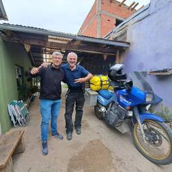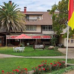 Die Fahrt dorthin führt über asphaltierte Strassen. Am Gländeeingang steht ein Häuschen mit Schranke. 2000 Pesos Eintritt. Über einen gut ausgebauten Schotterweg erreicht man das Anwesen. Ein mulmiges und merkwürdiges Gefühl begleitet mich als wir über das Gelände fahren. Das Anwesen ist immer noch in Betrieb. Die Mitarbeiter sind freundlich und grüssen. Vor vielen Gebäuden stehen grosse Schilder in spanischer und deutscher Sprache. Deutsche Flaggen hänge hier und dort über den Balkonen. Vor einem Museum treffe ich auf ein deutsches Paar aus Berlin. Auch sie nutzen ihren Ausflug für einen Besuch dieser historischen Stätte. Es gibt einige Cabanas zum Mieten und ein Hotel. Sowie das alte Gemeinschaftshaus welches als Restaurant umarrangiert wurde. Dort spricht mich George an. Ein österreichischer Pilot der Vermessungsflüge macht und nebenbei mit Gästen Rundflüge. Ein Flugplatz ist auf dem Gelände. Sein erstes Motorrad war ebenfalls eine Transalp. Wir bekommen Gesellschaft von Rüdiger. Er ist einer von ca. 100 Bewohnern die heute hier noch leben. Er hat die ganze Leidensgeschichte selbst erlebt. Auch seine Mutter, fast 98 Jahre alt, lebt hier noch. Die älteste Bewohnerin wird im Mai 101 Jahr alt. Über viele Berichte schüttelt er den Kopf und hält sie für Effekthascherei der Medien. Nur eine Doku bei Amazon findet seine Zustimmung. Man solle mehr von heute berichten. Man hat dies mit aufgebaut und möchte nicht mehr gehen. Irgenwie erleichtert gönne ich mir nun doch einen Kaffee mit Kuchen. Dabei lerne ich Anna kennen. Sie ist zuständig für Hotel und Restaurant und hat als Kind selbst hier gelebt. Sie erzählt mir, daß dieses Jahr die Entscheidung getroffen wird ob das "Zippelhaus", das heutige Restaurant und damalige Gemeinschaftshaus aufgrund seiner Vergangenheit abgerissen wird. Sie setzt sich dafür ein, daß die Politik die Belange der jetzigen Bewohner mit einbezieht und möchte sich Gehör verschaffen. Nicht alle waren Täter. Es ist mittlerweile später Nachmittag. Es gibt einen Campingplatz in der Nähe. Wir sind die einzigen Gäste. Ja, der erste Staub haftet wieder an uns.Lue lisää