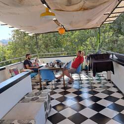 Gut geschlafen. Noch in Ruhe frühstücken bevor ich Blue zur Werkstatt fahre. Moment, zwischen all den Stickern am Kühlschrank entdecke ich einen Adressaufkleber von jemanden den ich kenne. Foto gemacht und an Achim geschickt. Er hat sich hier verewigt. Ca. 2 KM bis zur Werkstatt. Noch einmal alles durchgesprochen und notiert. Da die Ersatz- bzw. Verschleißteilbesorgung in Santiago am einfachsten ist werde ich meine Ersatzkette behalten und eine neue Kette besorgen lassen. Etwas frühzeitig den Ölwechsel machen, Schwinge checken und nachfetten, Hinterradbremsbeläge wechseln,etc. Damit die Weiterreise entspannt starten kann. Zurück in der Casa Matte treffe ich auf Frank auf einen Plausch. Zeit für ein zweites Frühstück danach etwas chillen auf der Dachterrasse und Sonne genießen bevor die nähere Umgebung zu Fuß erkundet wird. Es ist bereits dunkel als ich zurück bin. Füße hoch und entspannt den Abend bei einem Bier ausklingen lassen.Lue lisää