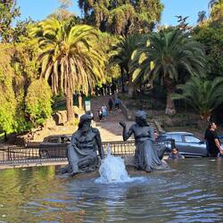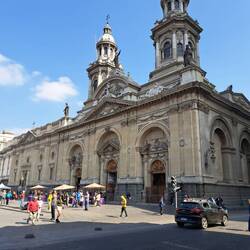 Die nahe Lage des Hostels macht es möglich, dass ich auch heute alles zu Fuß erreichen kann. Erstes Ziel ist das Palacio de La Moneda, die ehemalige Prägeanstalt und heutiger Präsidentenpalast. An der Hauptstraße befindet sich das Centro Cultural La Moneda. Heute findet eine friedliche "Demonstration" statt, die im Zusammenhang mit der getöteten Polizistin und Polizisten steht. In den unteren Etagen des Gebäudes befinden sich Kunstausstellungen. Fußball und Frauen ist hier das Thema. Auf der "Rückseite" des Gebäudes befindet dann der Präsidentenpalast. Doch der hat heute frei und es gibt nichts zu sehen. Seine Privatresidenz befindet sich nicht in diesem Gebäude. Weiter geht es zum Herz der Stadt die Plaza de Armas. Dort steht höchst eindrucksvoll die Catedral Metropolitano. Aber auch das Museo Nacional de Bellas Artes steht hier. Da am Sonntag der Eintritt frei ist nutze ich die Gelegenheit für einen Besuch. Mitten im Zentrum und unweit entfernt ist der Cerro Santa Lucia. Ein kleiner Park mit einer spanischen Festung von der man zum Greifen nah die Stadt von oben sieht. Ein herrlicher und entspannender Park. Am Eingang erwartet Neptun die Besucher. Am Fuße des Parkes liegt das Lastarria Viertel mit seinen Theatern , Cafés und Restaurants, Designläden und Galerien. Flohmarkt-Stände, wo Antiquitäten, Bücher und Handwerkskunst verkauft wird. Es gibt viele grüne Parks in Santiago die als Treffpunkt genutzt werden oder auch von Künstlern. Ein abwechslungsreicher Tag geht zu Ende an dem es viel zu sehen gab.Lue lisää