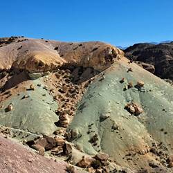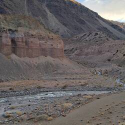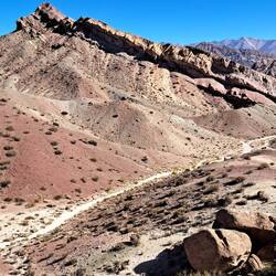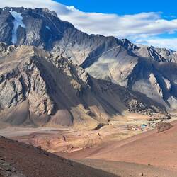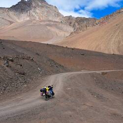 Geduscht, gepackt, gefrühstückt und dann doch noch um einen Tag verlängert. Ich hatte auf Schildern und im Navi etwas von Incas Ruinen und archäologische Fundstätte gelesen. Da kommt Indiana Jones in mir hoch und die Suche nach dem Inca Goldschatz. So geht's mit leichtem Gepäck zunächst zur Tankstelle. Blue steht wieder im Mittelpunkt und wird von einigen brasilianischen Motorradfahrern inspiziert. Meine paar Worte spanisch reichen für einen kleinen SmallTalk. Auf zu den Ruinen. Zunächst auf Schotterstraße dann zu Fuß weiter. An der Straße kein Hinweisschild. Nichts ausgeschildert. In voller Montur bei strahlendem Sonnenschein erreiche und finde ich die Ruinen trotzdem. Meine Vorstellung von Inca, Macchu Picchu, Peru, Panflöte und Incagold wird hier nicht erfüllt. Die hier aufgestellten Tafeln sind verblichen. Es wirkt so als ob nicht nur die Incas verschwunden sind. Wahrscheinlich haben die einstigen Siedler sich beeilt und sind in Flip-Flops über den Andenpass gelatscht. Die aufgestellten Steine erinnern an Gärten mit Sitzecke bei uns und an Baumärkte. Der Geist von diesem Ort will nicht zu mir überspringen. Dafür springt Blue mühelos an und wir manövrieren über Stein und Sand zur Hauptstraße. Zunächst zum Mirador De Uspallata. Ich begnüge mich mit der Aussicht über den Ort. Das nächste Ziel ist Cerro 7 Colores. Volltreffer. Über Schotterstraße geht es zu diesem spektakulären Ort. Mit ausreichend Zeit widme ich mich diesem Felsen. Dabei lerne ich Bernd und seine Frau kennen. Sie leben in München. Bernd kommt aus Dresden und sie besuchen die Familie seiner Frau in Mendoza. Zurück im Ort fahre ich noch zu den Las Bóvedas De Uspallata. Es ist bereits geschlossen. Hier erfährt man geschichtliches zur Entstehung des Ortes. Die Abenddämmerung beginnt. Zeit für eine Dusche und Abendessen.Lue lisää