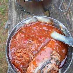 Als erstes kommt eine Currywurst. Ja, die erste Currywurst auf dem Trail. Das gefüllt mir.Læs mere