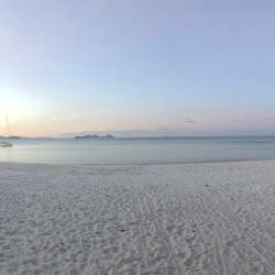 Sunrise is officially 6.14am but we want to see it from the other end of Whitehaven Beach at Hills Inlet. It’s a 7km beach hike from camp so we wake up and set off at 5am at a brisk walking pace.