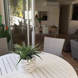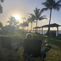From the Harbourside end, there is a grassy point surrounded by tall coconut palm trees, our favourite place to watch sunset looking towards Mossman with a glass of wine and some tasty cheese.
