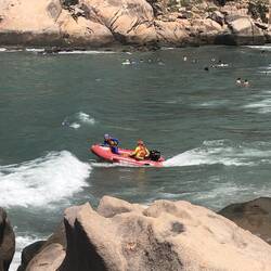 Jen takes the kayak and paddles along the coastline. Suddenly she shouts out, there’s a baby shark... yeah well where’s it’s mother...?