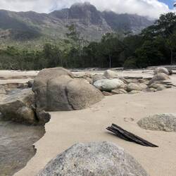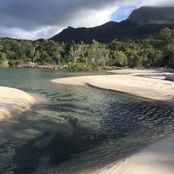 As we are the only campers, we have choice of camp site and select a perfect site within metres of the beach overlooking Whitehaven shoreline.