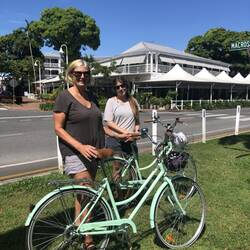 It’s Jaime’s choice for activity for the day and she chooses bike riding. We have two retro bikes up here and also our mountain bikes from our trip. The girls go retro. We follow Davidson Street, the Main Street into town and ride along a scenic bike path, past the old cemetery, following the sugar cane railway track.