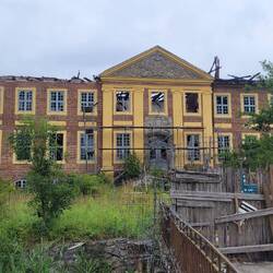 Um kurz vor elf bringt mich der Bus zurück nach Dassow für die letzten 10km. Von dort geht es erstmal entlang der gut befahrenen Landstraße Richtung Pötenitz. Bei Benckendorf biege ich dann in die Felder ab um in einem Bogen über Johannstorf und Volkstorf zu gehen. Schloss Johannstorf ist vor zwei Monaten abgebrannt, überhaupt scheint sich niemand um den Herrensitz seit der Wende gekümmert zu haben. Eine Gelegenheit, wenn man über das nötige Kleingeld verfügt.