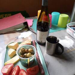 Aus meinem Rucksack zauberte ich ein herrliches Mahl: ein frisches Baguette, das ich heute Morgen beim Bäcker gekauft hatte, ein Kanten Käse, eine würzige Salami, zwei saftige Tomaten, ein paar herzhafte Oliven und eine Flasche Rotwein. Gesättigt und zufrieden werde ich mich gleich in meinen Schlafsack wickeln und den Geräuschen der Nacht lauschen.