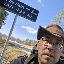 Hinter dem Col zieht der Pfad wieder an. Der Wind wird kühler, der Atem kürzer. Der Mont Saint-Rigaud liegt vor uns wie ein stiller Riese. Miriam erzählte, dass kurz vor dem Gipfel eine Quelle sei, „heilig“, sagt sie, mit Heilwirkung – für die, die glauben. Wer dort trinken will, soll vorher ein Kreuz basteln und aufstellen. Ich grinste. Kein Heiliger, aber auch kein Ignorant. Zwei Äste, ein Schnitt mit dem Taschenmesser, und zack – mein Cowboy-Kreuz stand. „Voilà“, sagte ich, „ein Glaubensbekenntnis aus Holz und Staub.“