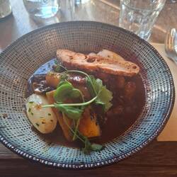 Ich folge ihm. Ein einfaches Gebäude, hell, lebendig. Es riecht nach Brot, Suppe, Herbstgemüse. Junge Menschen laufen hin und her, decken Tische, servieren, lachen leise. Kein Restaurant, keine Show – nur ehrliches, gemeinsames Tun. Wir setzen uns an einen langen Tisch. Auf den Tellern: Porreesalat, gefüllter Kürbis, Birnentarte. Alles aus dem Garten, alles selbstgemacht. Kein Überfluss, keine Pose – nur gutes Essen und ein Stück gelebte Erde.