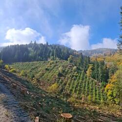 Wald, immer wieder Wald. Dunkel, satt, nach Harz und Erde duftend. Dann öffnet sich zwischendurch der Blick – Täler, Dörfer, ferne Linien, die im Dunst verschwimmen. Und jedes Mal, wenn der Horizont auftaucht, fühlt es sich an, als würde der Trail mir zunicken. "Weiter, Cowboy, weiter."