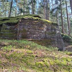 Dann die Katzensteine – mächtige Sandsteinfelsen, aufgetürmt wie ein zerfallenes Fort. Sie stehen da, roh und erhaben, als hätten Riesen ihre Würfel über das Land gestreut. Ich halte inne, lege die Hand auf den warmen Fels und denke: Das hier ist Natur, wie sie sein soll – ungezähmt, ehrfurchtgebietend.