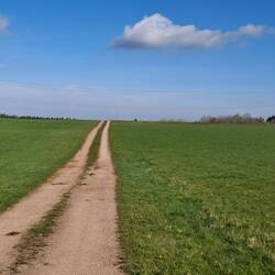 Dann geht’s weiter, raus ins offene Land, Wiesen, soweit das Auge reicht. Fahrwege, die sich verlieren, manchmal nur eine Trittspur am Rand des Feldes. Das Land liegt still, die Sonne brennt, und wenn das Getreide hoch steht, tanzen Korn- und Mohnblumen wie rotes und blaues Feuer im Wind. Da spürst du, dass du lebst – kein Highway, keine Stadt, nur du, die Spur und das weite Feld.