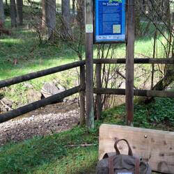 Dann steigt der Weg an, hoch nach Höfen. Am Nationalparkhaus eine kurze Pause, ein freundliches Gespräch über die Busverbindungen zum und vom Trail, ein Happen zu essen und ein Schluck zu Trinken – der Ritt ist lang, da zählt jede Rast. Höfen selbst zeigt sich still, ordentlich, fast schläfrig. Kaum bin ich durch, geht’s wieder runter, vorbei an einem Köhlerplatz, wo man früher Holzkohle herstellte.