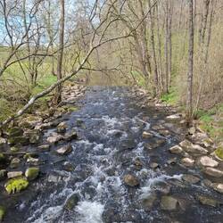 Der Abstieg führt mich hinunter ins Tal der Kyll. Unten wird es wieder enger, lebendiger. Das Wasser begleitet mich, diesmal nicht still wie die Weiher, sondern mit Stimme. Ich folge ihr ein Stück, lasse mich treiben, bis der Weg mich noch einmal über eine Höhe schickt. Die Beine melden sich jetzt deutlicher, aber das gehört dazu. Wer Strecke machen will, muss sie auch spüren.