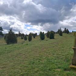 Ein weiter, offener Raum, der sich anders anfühlt als alles davor. Hügelig, trocken, fast schon südlich im Charakter. Der Boden hell, das Gras kurz, dazwischen die knorrigen Wacholderbüsche, die wirken, als hätten sie schon mehr Sommer gesehen als man zählen kann. Wenn der Wind darüber streicht, bekommt das Ganze etwas von weiter weg – nicht ganz Toskana, dafür fehlt die Hitze, aber nah genug, um den Gedanken zu verstehen.