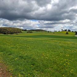 Danach öffnet sich die Landschaft noch weiter. Keine Zäune mehr, keine klar gezogenen Wege. Nur Wiesen. Du läufst einfach. Suchst dir deine Linie, setzt einen Schritt vor den anderen, wie es gerade passt. Das hat etwas Rohes, etwas Ehrliches. Kein vorgegebener Kurs, nur Richtung.