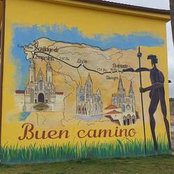 Eigentlich wollte ich heute schon nach 22 km stoppen, aber Nic sagte mir schon, dass die Herbergen in Belorado alle ausgebucht sein. Außerdem verriet mir Pierre, dass die Albergue La Taberna Espinosa offen sei - also entschloss ich mich kurzerhand dazu doch etwas weiter zu laufen. Nach einer kleinen Pause mit Nathalie und einem 2. französischem Pilger, ging es in den Endspurt. Auf den letzten 5 km traf ich Nic wieder, der ein Dorf eher eine Unterkunft zusammen mit seinem Onkel gebucht hatte. Die letzten 2 km musste ich mich dann alleine durchbeißen. Am Ziel angekommen staunte ich nicht schlecht, denn da saß die versammelte Mannschaft, die ich gestern in der Albergue kennengelernt hatte, im Gastraum beim Bierchen und begrüßte mich fröhlich! Wollten sie nicht auch alle schon vorher stoppen? Sie hatten das gleiche Problem wie Nic und sein Onkel und wurden von allen Albergues in Belorado angewiesen, so dass sie weitergehen mussten. Aber hier bekamen wir alle noch ein Plätzchen und ich traf noch ein paar neue Pilger.