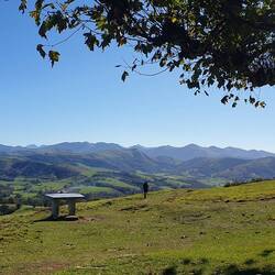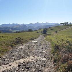Kurz vor Ostabat trafen heute die 3 französische Jakobwege (Podiensis, Lemovicensis und Turonensis) zusammen, d.h. den Weg der 2. Hälfte kannte ich bereits. Und sofort wurden Erinnerungen wach: denn 2018 war ich, ganz berauscht vom Anblick der Pyrenäen (die sah ich an dem Tag wegen der vernebelten Tage zuvor, zum ersten Mal), ungewollt zu einem Aussichtspunkt hinaufgestiegen und hatte so ein paar extra Kilometer auf der Uhr. Heute gings aber den direkten Weg, jedoch mit deutlich weniger Pilgern als damals. In der heutigen Gite Maison Hego Alde, die wohl erst dieses Jahr eröffnet hat, sind wir wieder in der gestrigen Besetzung nach und nach eingetrudelt. Es gibt ausschließlich 2-Bett-Zimmer, so dass ich wieder für mich alleine bin. Alles sieht auch noch schick und neu aus, nur dass es keine Bettlaken gibt, ist etwas ungewöhnlich - aber der (noch sehr junge) Gastgeber versicherte mir, er wäscht den Matratzenschoner täglich, so dass ich mich beruhigt mit meinem Hüttenschlafsack darauf betten kann.