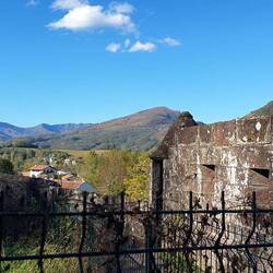 Ich verließ als Letzte die Herberge und stellte mich heute auf viel Laufen an der Straße und somit auch viel Verkehr, sowie eine ordentliche Steigung ein - denn: ab November schließt leider die Route de Napoleon, so dass wir die alternative Route nehmen mussten. Dank des Samstags war aber zum Glück nicht viel los auf der Straße und das letzte Drittel bergauf führte sehr schön entlang eines Bachs und durch den Wald, so dass ich positiv überrascht war und die Steigung kaum spürte - auch wenn ich ab und zu etwas wehmütig in Richtung Berge blickte. Aber spätestens am Ipaneta-Pass war ich froh nicht auf eigene Faust über den schöneren Weg gelaufen zu sein. Dort wehte ein ordentlicher Wind, der mir beinah das Kopftuch vom Kopf fegte.