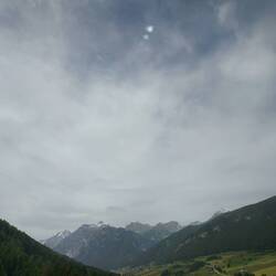 We're in Österreich (Austria). Good thing the bus driver didn't notice how I got this picture! (I was on the stairs of the back exit....lol). Yes that's snow on the mountain!