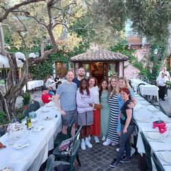 Great dinner outside tonight. Started with pasta, then meatballs and roasted potatoes. We finished off with panna cotta. We were serenaded by a man with an amazing voice!
