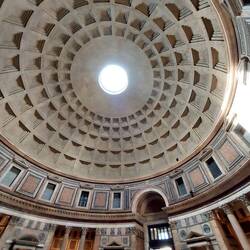 The Pantheon was originally built as a temple for all gods. The Oculus (round opening in the top of the dome) is 142 feet off the ground and is also 142 feet wide!