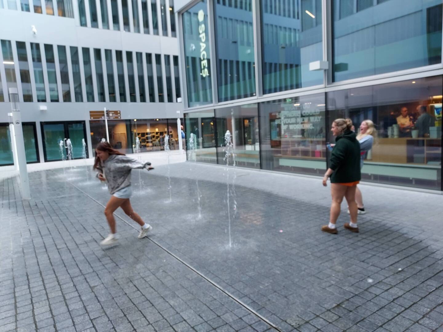 Some of us decided to play in the water jets!