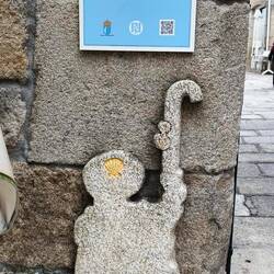 Unweit von der Jakobuskiche liegt der Brunnen ⛲ "Fuente del Carmen". Im Mittelteil der Mauer 🧱 wird die Überführung des Apostels Jakobus 👼 durch seine Jünger dargestellt. Im oberen Teil eine Taufe durch den Apostel, die symbolisch für die Evangelisierung ✝️ Spaniens steht.
