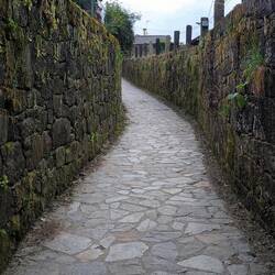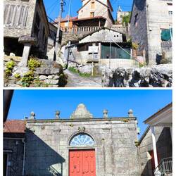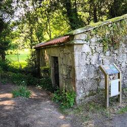 🤓: Es handelt sich um ein Beispiel für ein Element der traditionellen galicischen Architektur, das aus einem Brunnen mit fließendem Wasser für die Häuser und einem Waschplatz besteht, der über ein geneigtes Becken mit Wasserzufluss verfügt, um Kleidung zu waschen. Solche Elemente waren sehr verbreitet in ländlichen Gebieten und kleinen Dörfern Galiciens.