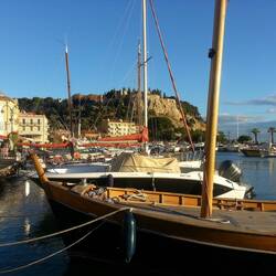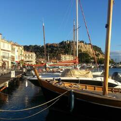 Cassis is a breathtaking location, with a lovely, sheltered port, lighthouse, ancient clifftop ruins and very steep streets. Unlike most French towns it does not close down as soon as the sun sets, and we were able to find a huge number of beachfront eateries for our dinner last night. A large sailing ship, looking like Captain Jack Sparrow's Black Pearl, moored in the harbour and made a magnificent silhouette against the setting sun. We sat on the pier watching the skies slowly darken while the thinnest possible crescent moon slowly sank to the horizon. It was a memory we will long treasure.
