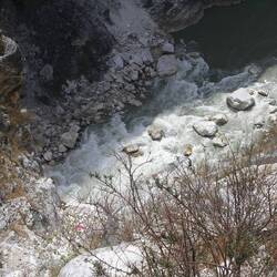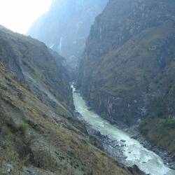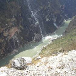 To recover from our efforts of yesterday, we were rewarded with a free day in the gorge. It was a fantastic opportunity to explore the gorge on two feet, also to relax at Sean's Guesthouse and enjoy the unbelievable views across the gorge to the opposite cliffs. They were almost 4000 metres high and close to vertical. Way below us was the famous Yangtze River, roaring its way through the narrow gorge.Meer informatie