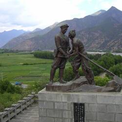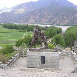 Once out of the gorge we followed the mighty Yangtze (more correctly called the Jinshu River at this point) further upstream to the key town of Shigu. This location has special significance for the Chinese as it is the location where the river makes almost a complete U turn from its southward journey to head back northwards into the heart of China. Many Chinese make this a special place of pilgrimage and the town contains large monuments to the Red Army to commemorate the crossing by Mao Zedong in 1936.