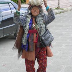 At Shigu we spent some time wandering the town and walking down to the actual bend in the river. I guess that many towns all over the world have their own “colourful local identities”, and we found that Shigu was no different. We soon met a local whose sole claim to fame was that she carried a trussed live duck about on her head. As soon as she saw us approaching, she proudly put the duck on her head to pose for our pictures. Apparently she thought this was quite a clever skill and put out her hand for a donation for her efforts. Another example of private enterprise I guess.