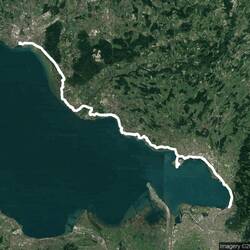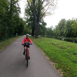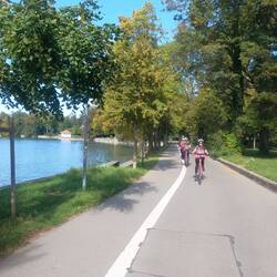 After some time adjusting seat heights and test riding, we were on our way. First we had to navigate from the bike depot to the point where we could join the GPS track. Then we made our way out of the city and on to the bike path along the edge of the lake.