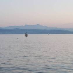 After settling into our room, Maggie and I went for a stroll along the shore to the port area and found a lovely table by the waterside. Greg and Andrea joined us as we watched the sun slowly set in the west. We were also entertained by numerous fish jumping out of the water. Across the lake we could see the towering silhouettes of the snow capped Swiss Alps. It was a magical end to a wonderful day.Read more