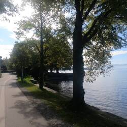 We only had about 10 km further to ride to reach our destination of Bregenz. This also meant that we had to cross into Austria, although neither of us noticed any sign of the border while we were riding. At this point the lake is narrower, and the opposite shoreline is quite spectacular.