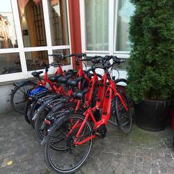 Things got even better when we saw our bright red (and very new) ebikes all lined up and waiting for us. Since they were the same as the ones we had used on the Danube, we were very happy with what they had supplied. The friendly young girl even offered us a cup of coffee or an icecream to get us on our way.