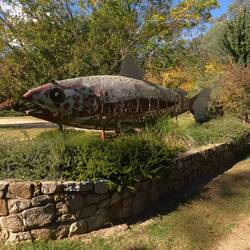 The ride to Mansfield is slightly uphill, but the good surface and gentle tailwind made the going easy. One surprise discovery was a mobile phone tower that had been distorted into a piece of sculpture. We stopped there for a closer look and a few photos.