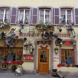 Like Eguisheim, Riquewihr is also a tiny medieval village on the outskirts of Colmar. In many respects it is like Eguisheim, however it has been much more commercialized. Although it was undeniably beautiful, it did start to feel a little like Disneyland, especially when the buses started to disgorge large throngs of tourists into the narrow streets.