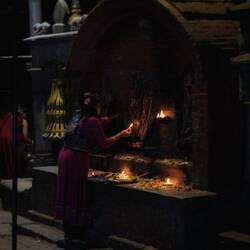 Étape suivante : Pashupatinath, le complexe funéraire. Un incontournable pour qui visite Katmandou pour la première fois, avec ses ghats de crémation. Le lieu n'a pas trop changé depuis 2 ans, toujours sale, voire sordide, et néanmoins empreint d'une certaine religiosité, hérissé de ses multiples templions et stupas à moitié délabrés sur la partie haute, et bien sûr ses ghats de crémation le long de la rivière Bagmati, bien plus gonflée par les pluies de mousson que le mince filet d'eau putride qui coulait lors du dernier voyage.