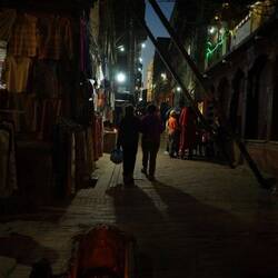 On fait quelques achats de dernière minute, oui, il en reste encore, et nous prenons un taxi. Ce taxi-même qui finit par se perdre dans les bas-fonds de Katmandou.