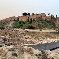 Von dort gingen wir zu Fuß zu unserer Unterkunft - der Jugendherberge. Unterwegs kamen wir an einem Laden vorbei, wo es leckere Teigtaschen gab. Wir gönnten uns jeweils zwei Stück - lecker. Nach dem Einchecken in der Jugendherberge, gingen wir sogleich etwas durch die Stadt. Leider hatten wir einen späten Flug, so dass wir nicht mehr in die Kathedrale und Alcazaba gekommen sind. Die Alcazaba von Malaga gilt als eine der schönsten Alcazabas, die in Spanien besucht werden können. Es wurde an den Hängen des Gibralfaro-Berges gebaut, wo sich bereits einige phönizisch-punische Überreste befanden. Diese Position war ein sehr strategischer Verteidigungspunkt der Stadt. Heute hat die Alcazaba von Málaga eine Fläche von 15.000 Quadratmetern, aber während der islamischen Zeit war sie zweifellos viel größer. Ein Teil der Mauern und der Haza Baja ist seitdem verloren gegangen. Die Alcazaba wurde von den Muslimen während ihrer Besetzung der Iberischen Halbinsel im Mittelalter erbaut. Die Einstufung als mittelalterliche Festung wird es jedoch nicht gerecht. Aufgrund seiner einzigartigen historischen und topographischen Entwicklung kann man sagen, dass die Alcazaba von Málaga wirklich ein Eigenleben hatte.