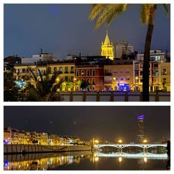 Nach einer ausgiebigen Pause, gingen wir am Abend nochmals in die City. Wir aßen bei Burger King (Vegan) und gingen dann zum „Setas de Sevilla“. Die „Las Setas“ (die Pilze) von Sevilla, auch bekannt als das Metropol Parasol Projekt des Architekten Jürgen Mayer, ist die größte Holzkonstruktion der Welt. Dann gingen wir zum Plaza mit der Kathedrale und von dort erneut zu „Torre de Oro“ und letztendlich am Canal entlang zum Hostal. Das Wetter heute war gut und mit knapp 30 Grad Disco recht warm. Die nächtliche Innenstadt war reichlich mit Menschen gefüllt - unglaublich, wie voll die Straßen und Plätze waren.