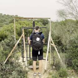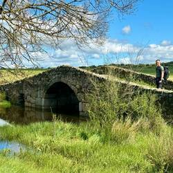 Wir kamen an einer „alternativen Herberge“ vorbei und hatten gehofft, dass wir hier etwas trinken könnten. Aber die war leider (oder je nach dem wie man es sehen möge) geschlossen. Weiter auf der gut begehbaren Sandpiste und über eine alte Brücke aus dem Jahr 1781, die den Fluss „Cuerpo del Hombre“ (Der Körper des Menschen) überspannte.