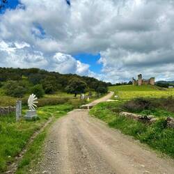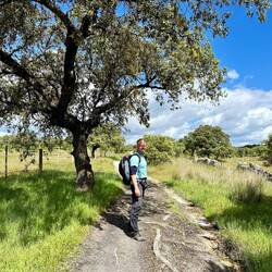 Erschöpft stellte ich fest, mit wie vielen Persönlichkeiten ich schon auf der „Via de la Plata“ unterwegs war: Da war zum einen die „strenge Nonne Dolores“, die „Tempel-Diana“ aus Mérida, die „weinende Jungfrau“ aus Cáceres, das „Flattergespenst“ von Galisteo, dann die namenlose „Lichtgöttin“ - die mit ihrer Schönheit alle blendet und nun war „Doña Esmeralda de la Calzada“ neben mir und erzählte, wie schön sie einerseits ist und auch wie kühl und grausam zugleich sie sein kann. In diesen Momenten viel mir immer ein, dass ich meine Kopfhörer mit Noise-cancelling in der Bauchtasche habe und warum ich sie nicht benutze 🤪.