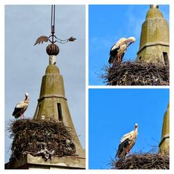 Es war ein schöner Feldweg, der leicht bergauf ging und auf dem Scheitelpunkt wir unseren Zielort „San Pedro de Rozadas“ sahen. Plötzlich ertönte ein lautes Klappern. Wir drehten uns um und entdeckten mal wieder ein Storchennest und das Storchenpaar führte einen tollen „Klappertanz“ auf. Dann gingen wir durch den kleinen Ort und kamen zur Unterkuft „Hotel Rural VII Carreras“. Gleichzeitig befindet sich dort auch das einzige Restaurant in dem Ort und wir trafen auf Marianne und Pippin. Leider war das Hotel ausgebucht und sie würden zur öffentlichen Albergue gehen. Wir checkten ein und nach einer kurzen Pause duschten wir uns. Danach gab es eine unspektakuläre Ortsbesichtigung, die nach 10 Minuten beendet war.