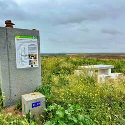 Wir folgten diesem leicht hügeligen und gut begehbaren Weg, wobei links uns die Olivenbäume weiter begleitet. Zu unser rechten Seite öffneten sich weite unbestellte Felder. Nach einer gewissen Zeit, sahen wir in der Ferne schon eine Haustuine - die ein wenig an eine kleine Burg erinnerte. Letztes Jahr hatte ich den „Turm“ auch schon bestiegen und ich wollte ihn unbedingt auch Olaf zeigen. So gingen wir dann über den unbestellten Acker zu der Ruine. An dem leeren Swimmingpool und dem unbedachten Gebäude vorbei zu einem kleinen Eingang - der hinter hohem Gestrüpp verborgen war. Die Rucksäcke ließen wir unten und ich bestieg zuerst die Steigleiter 3 Etagen nach oben. Dann kam Olaf nach und auf dem Turm stehend, hatten wir einen wunderbaren Rundumblick über die Gegend. Nachdem wir uns sattgesehen hatten, stiegen wir auf selbigen Weg wieder hinunter und gingen zurück zu unseren Olivenbäumen.